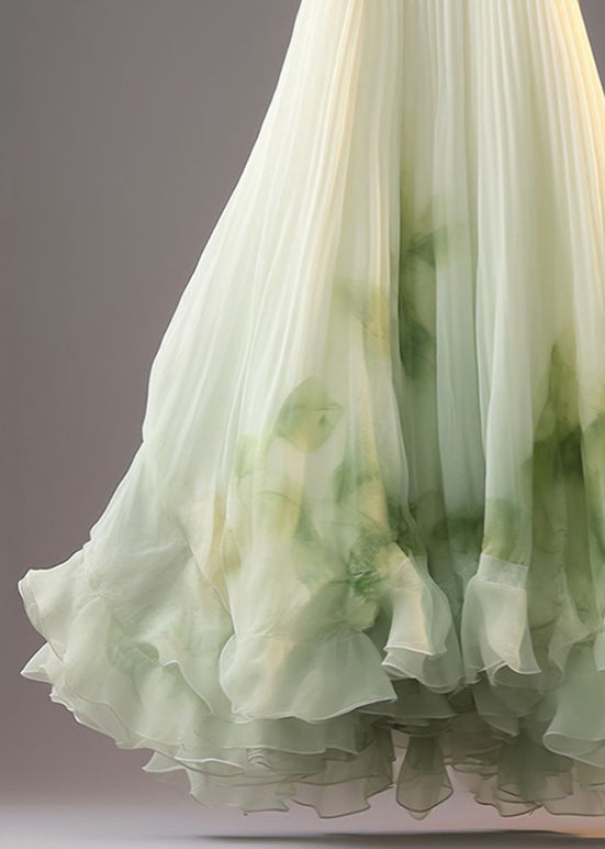 French Green Tie Dye Wrinkled Chiffon Skirt Summer Fabric: Chiffon Size & Fit: This garment fits true to size. Length: Size L measures 36.66from waist to hem. Waist:Fitted - elastic waist allows stretch Hip: Loosely Fitted. room for hips. Hand Wash Cold.