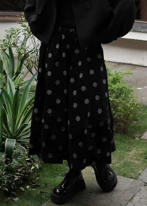 Loose Black Dot Elastic Waist Patchwork Corduroy Skirts Winter