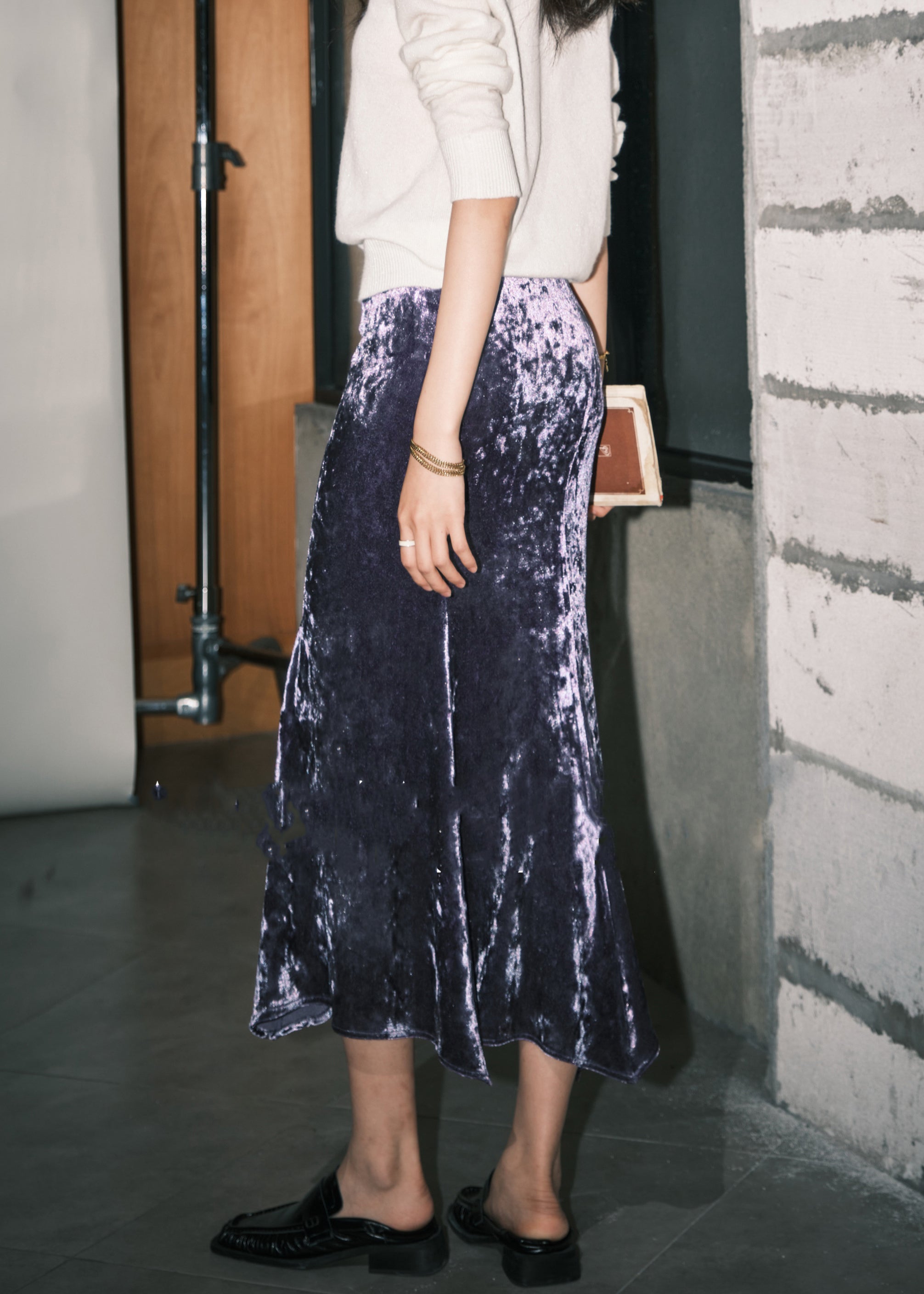 • Loose Purple Solid High Waist Silk Velvet Skirts Spring