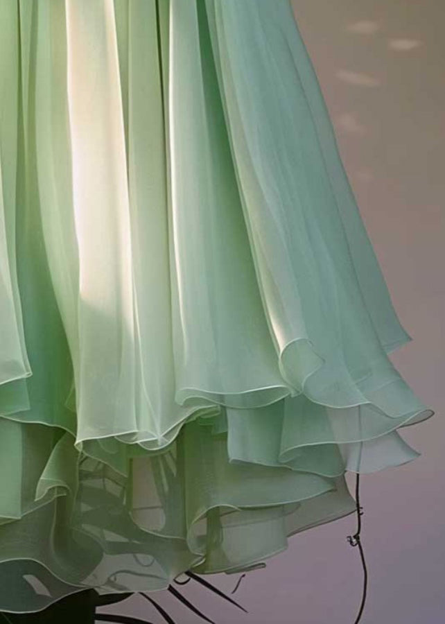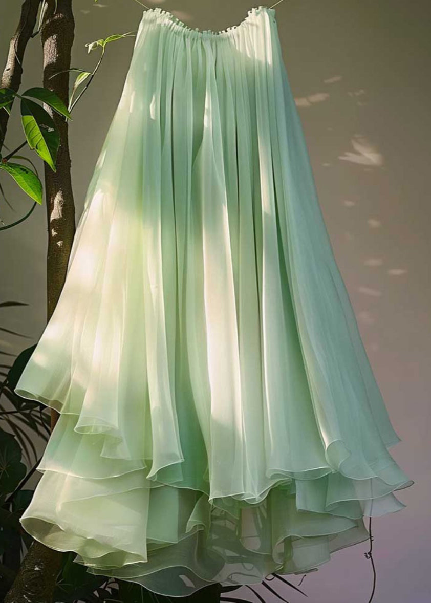 New Green Asymmetrical Elastic Waist Chiffon Pleated Skirt Summer