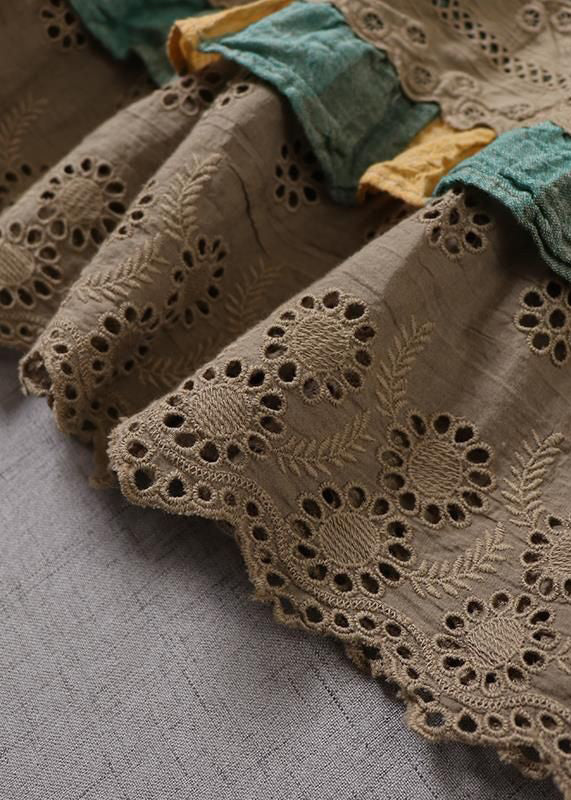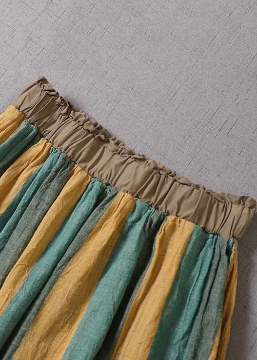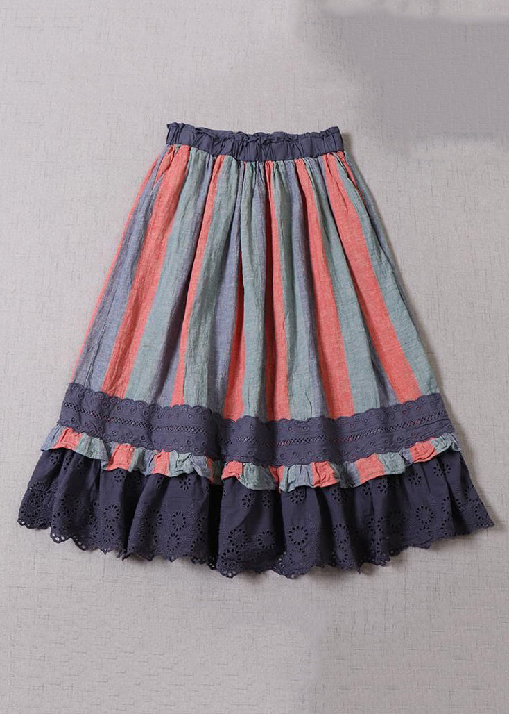 • New Green Striped Hollow Out Lace Patchwork Linen Skirts Spring