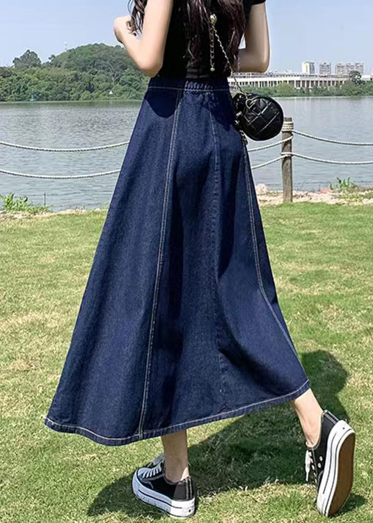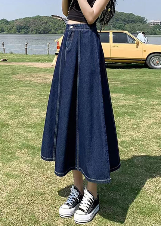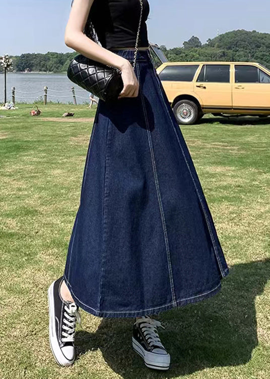 Women Navy High Waist Patchwork Denim A Line Skirts Summe Fabric: Denim Fabric Size & Fit: This garment fits true to size. Length: Size XL measures 32.76from waist to hem. Waist:Fitted - elastic waist allows stretch Hip: Loosely Fitted. room for hips. Hand Wash Cold.